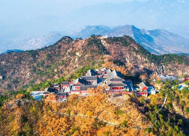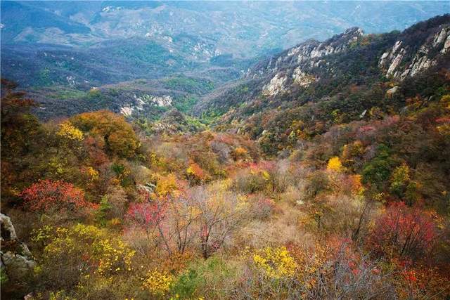天蒙山上自然风光秀丽,群山林茂,森林覆盖率高达98%,尤其是在天蒙山上大量栽植的黄栌、红栌、美国红枫、火炬树、棠梨等红叶树,在这个季节先后变色。