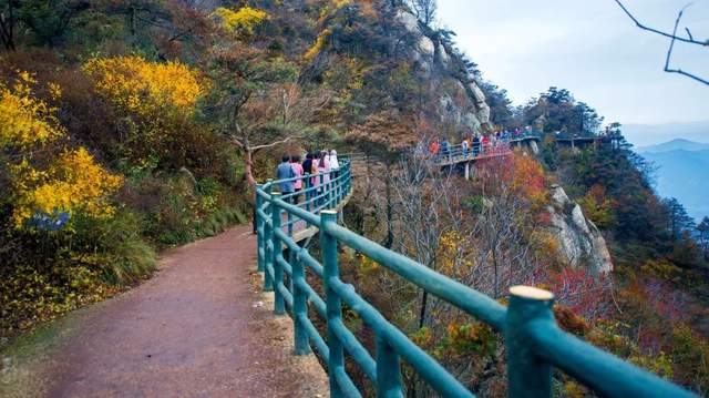 不登山不知山高,天蒙的风景绝不止于此,走进天蒙山方知其全貌。19.9元打卡江北第一悬崖栈道,行走在栈道不同的位置,周围黄绿层叠,色彩更迭变幻,感受徒步的体验和快乐,那真是迷人秋色赏不尽。