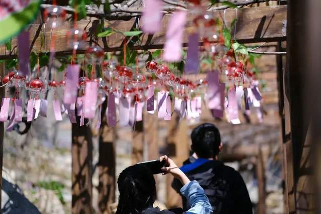 游人沐浴着温暖的阳光、和煦的春风,一路上欣赏小巧玲珑、别致多样的风铃,聆听如天籁一般风铃摇动的音响,感受风铃之声与大自然的和乐之美。